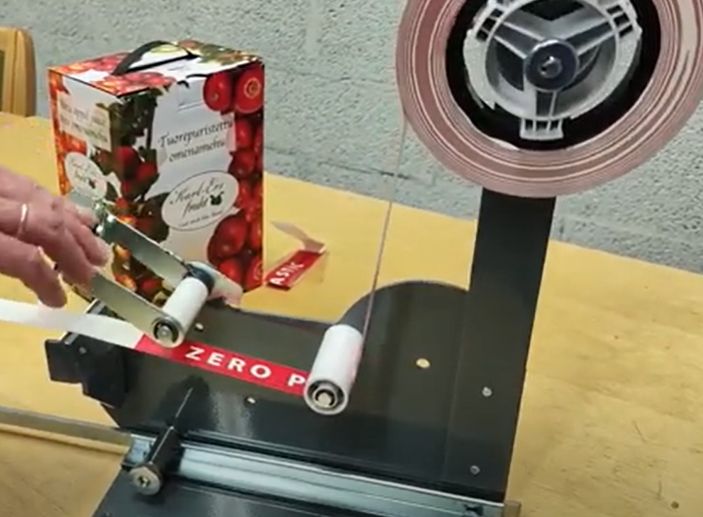 To kompaktowe, ręczne urządzenie, które prowadzi i dociska papierową taśmę uchwytową z paskiem nośnym do ścianek kartonu BIB, tworząc trwały, wygodny uchwyt do przenoszenia (ang. carry handle). Sprawdza się w: